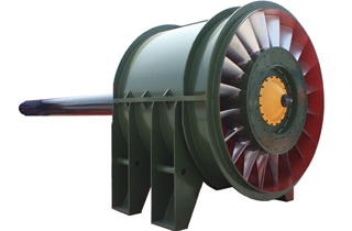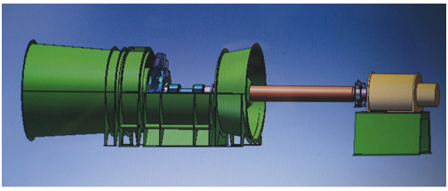2.風機采用單電機驅動,電機通過長軸安裝在風機外面,這種安裝方式特別適合大型礦井前后期使用功率差別大的特點,風機設計不受電機尺寸限制,根據需要使用不同的電機,節約能源,更換方便。