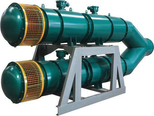 配套使用的FBD系列壓入式對旋局部通風機,是我公司的主要產品之一。風機設計精良、制造工藝先進,產品質量上乘。此系列風機具有四大顯著特點:1.高效率:葉片采用機翼扭曲式三元流設計,高效區域范圍廣。2.低噪音:機殼采用外包復式消音裝置,加裝了專門設計的進風口側進風消音裝置,噪音可降低10%以上,具有超低噪音特性。3.性能穩定:風壓較平穩,喘振現象微小,在風壓高、小流量區域同樣運行平穩。4.送風距離遠,對復雜巷道適應性強。